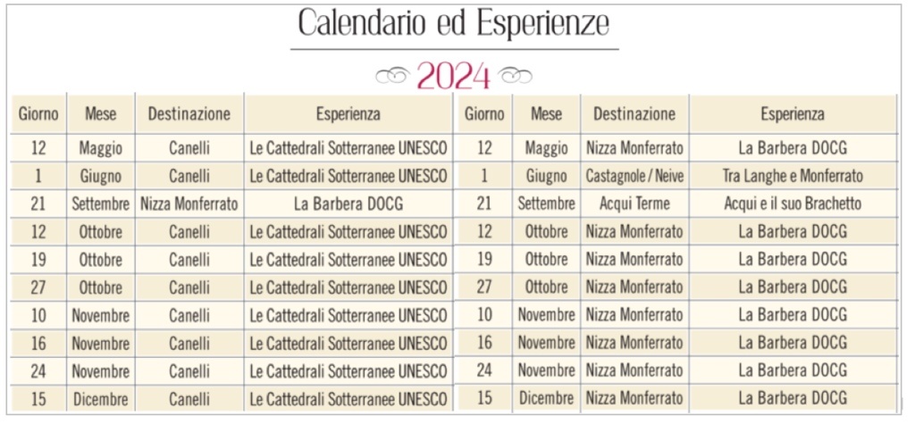 Il Calendario del 2024 riporta le 10 date con altrettante esperienze che si potranno fare a partire da maggio per finire a dicembre. Alcune di queste costituiscono una novità assoluta.