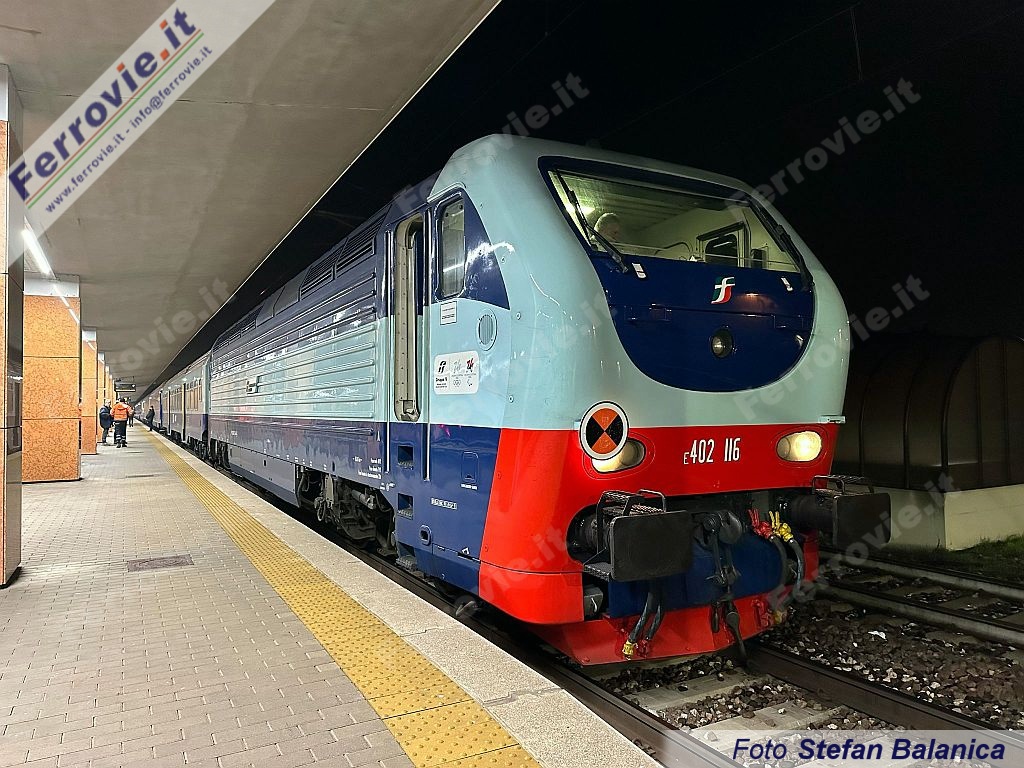 L'espresso Cadore (EXP 96101), partito da Calalzo alle 21, giungeva poi intorno alle 23 alla stazione di Treviso Centrale in doppia simmetrica di D.445 di Treni Turistici Italiani: le due macchine a gasolio, poco dopo l'arrivo venivano sganciate. La locomotiva Diesel di testa avanzava e si posizionava lato Venezia, mentre quella di coda si posizionava lato Tarvisio, pronta per il successivo rientro in deposito. Avvenuto lo sgancio delle unità di trazione Diesel, la prima delle due E.402 si avvicinava alle carrozze e veniva agganciata in testa al convoglio, e lo stesso avveniva in coda con la seconda. Nel frattempo le due locomotive Diesel, muovendosi sui binari adiacenti, raggiungevano il deposito dove seguivano le procedure di rifornimento del carburante.