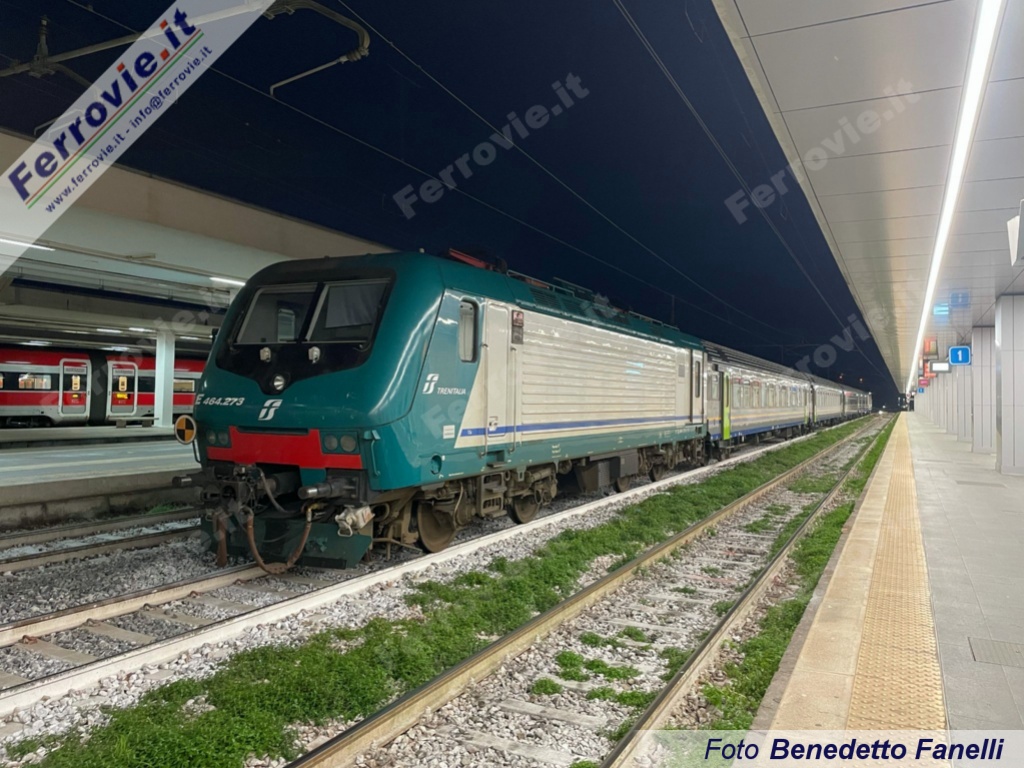 Agganciate le carrozze, il convoglio è partito da Ancona intorno alle 14.30 percorrendo tutta la ferrovia Adriatica sino a giungere a Foggia nel tardo pomeriggio. Dopo l'arrivo sul binario 1, ha effettuato manovra per essere stazionato sul binario 2, lato sud.