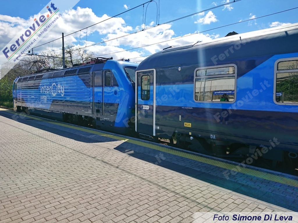 La composizione, inquadrata tra le locomotive E.402.125 e 135 anch'esse in livrea Intercity Notte, è partita subito dopo alla volta di Roma.