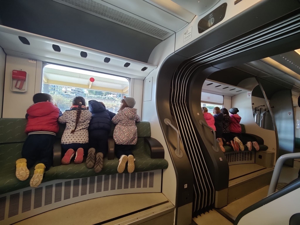 Ha riscosso particolare curiosità la visita in cabina di guida dei piccoli studenti, accompagnati dal macchinista della Tua.