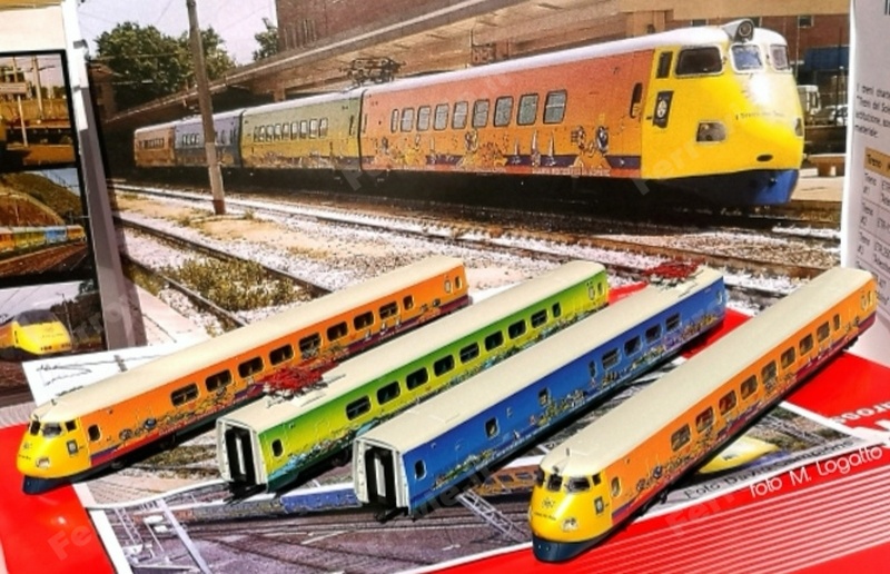Dalla seconda metà degli anni '90 del secolo scorso ai nostri giorni, arriva in scala H0 la riproduzione del colorato "Treno del Sole", che al vero ha viaggiato per alcuni mesi sui binari italiani. Il modello dell'ETR.401 in questa livrea speciale è il frutto di una particolare elaborazione dei modelli prodotti dalla Rivarossi in passato, articoli HR2577 e HR2578.