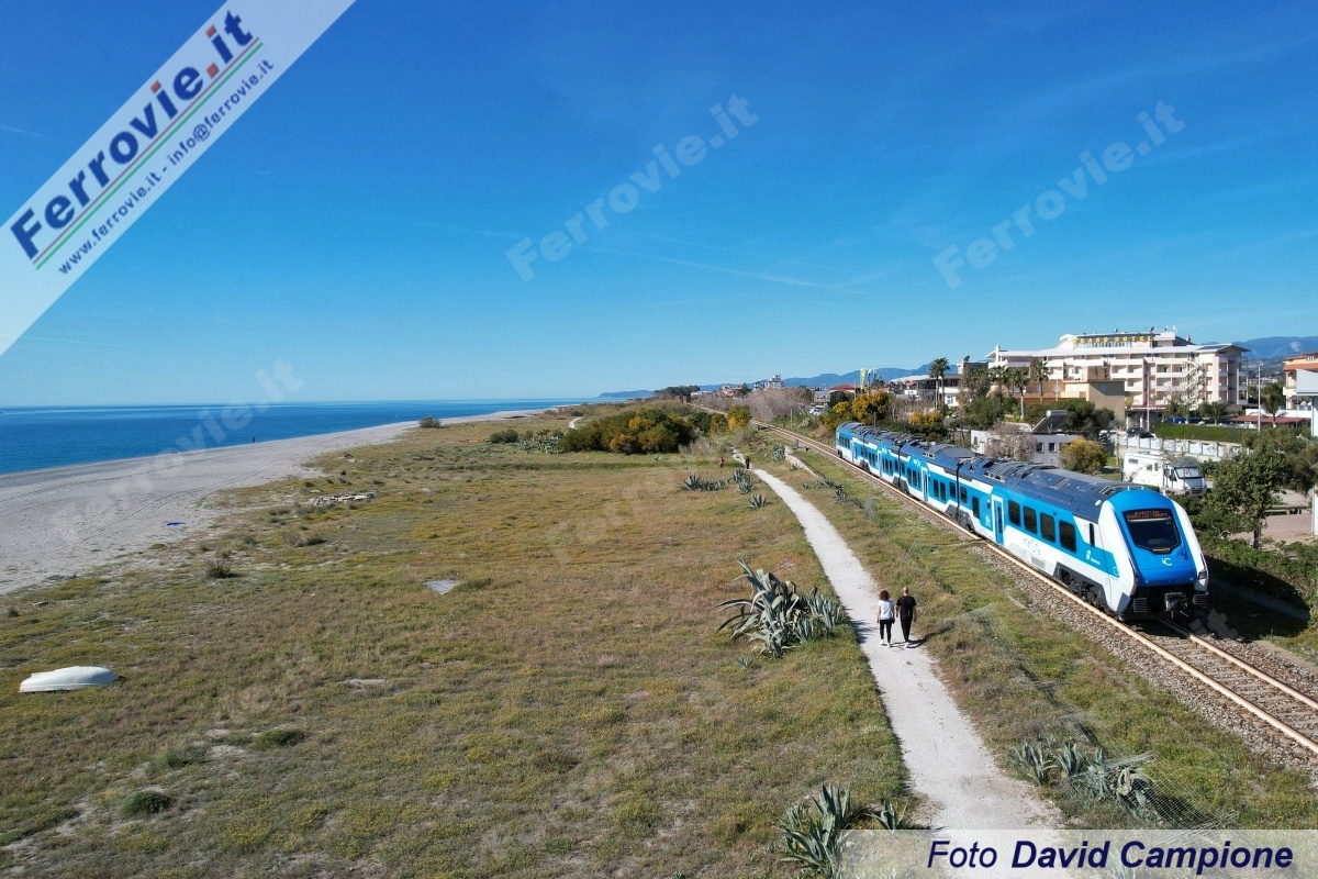 Oltre gli ampi finestrini si susseguono in ordine inverso le stazioni dell'andata, con il ritardo che rimane pressoché invariato; in un paio di casi veniamo ricevuti sul binario di precedenza per lasciare il corretto tracciato al treno incrociante. Le deviate di molte stazioni della jonica (e non solo di questa linea...) sono caratterizzate dalle famose saldature a rilievo dall'andamento a zig zag sul piano di rotolamento delle rotaie: l'intervento attuato da RFI si è reso necessario in quanto l'elevata salinità dell'aria in queste stazioni spesso vicinissime al mare porta ad una veloce ossidazione dei binari di precedenza (solitamente meno utilizzati rispetto quelli di corretto tracciato), causando non pochi problemi sull'occupazione dei circuiti di binario da parte dei treni che li impegnano. La saldatura in rilievo di cui sopra risolve la problematica ma al tempo stesso produce anche un gran rumore chiaramente udibile a bordo del convoglio in transito, seppur questo avvenga a bassa velocità (30 km/h o inferiore).