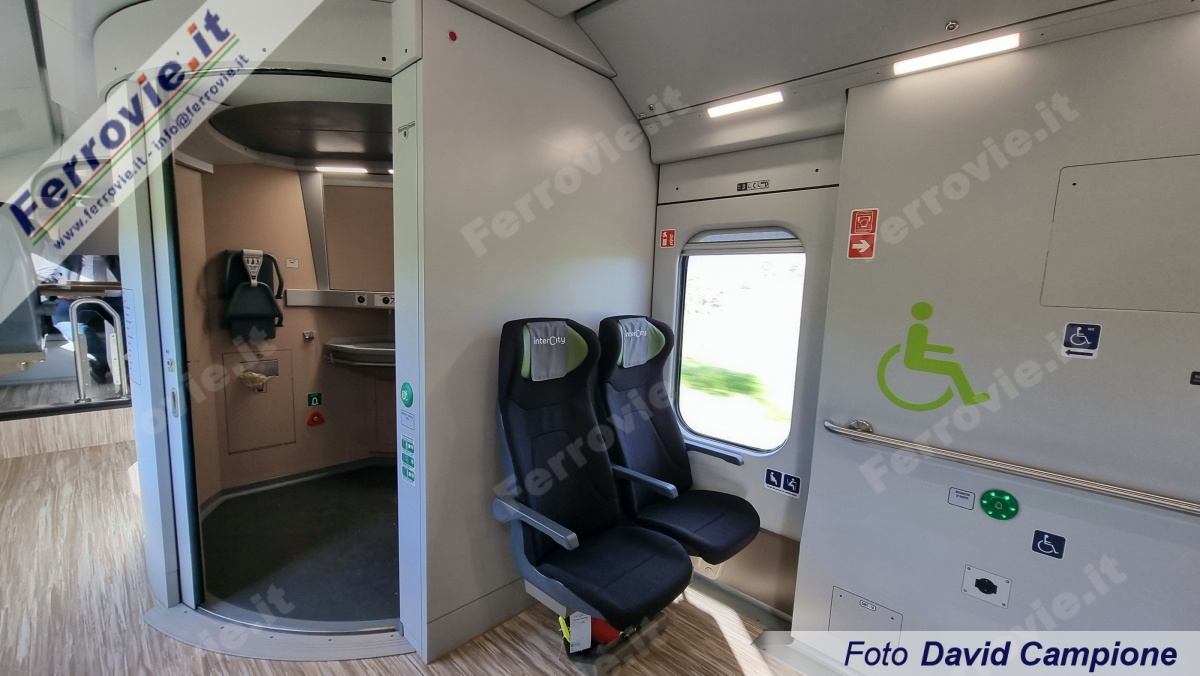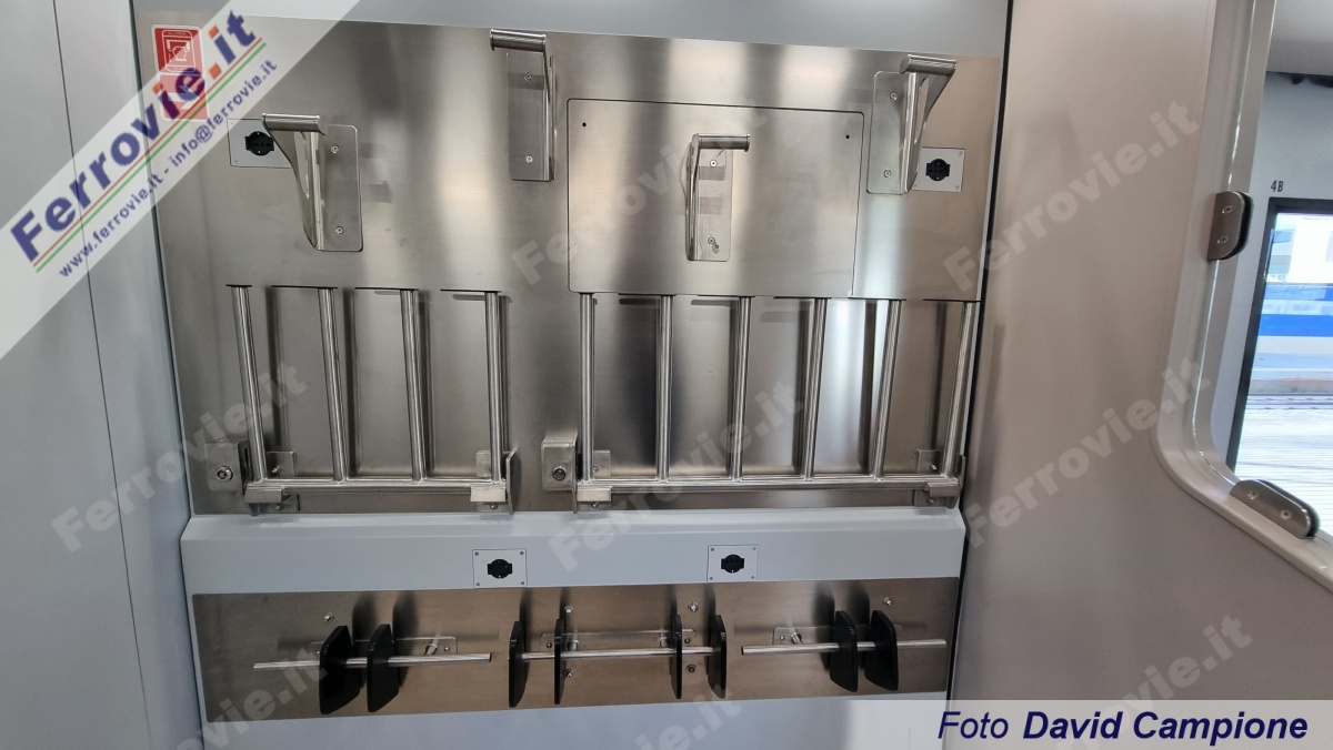 Vi sono inoltre 8 stalli (4 in carrozza 1 e 4 in carrozza 3) per trasporto di biciclette, e dotati di prese per la ricarica di mezzi con pedalata assistita o monopattini. Nella carrozza 3 è inoltre presente un distributore self-service di snack e bevande. L'ambiente viaggiatori è completato da un impianto di videosorveglianza e da schermi che riportano informazioni utili per il viaggio.