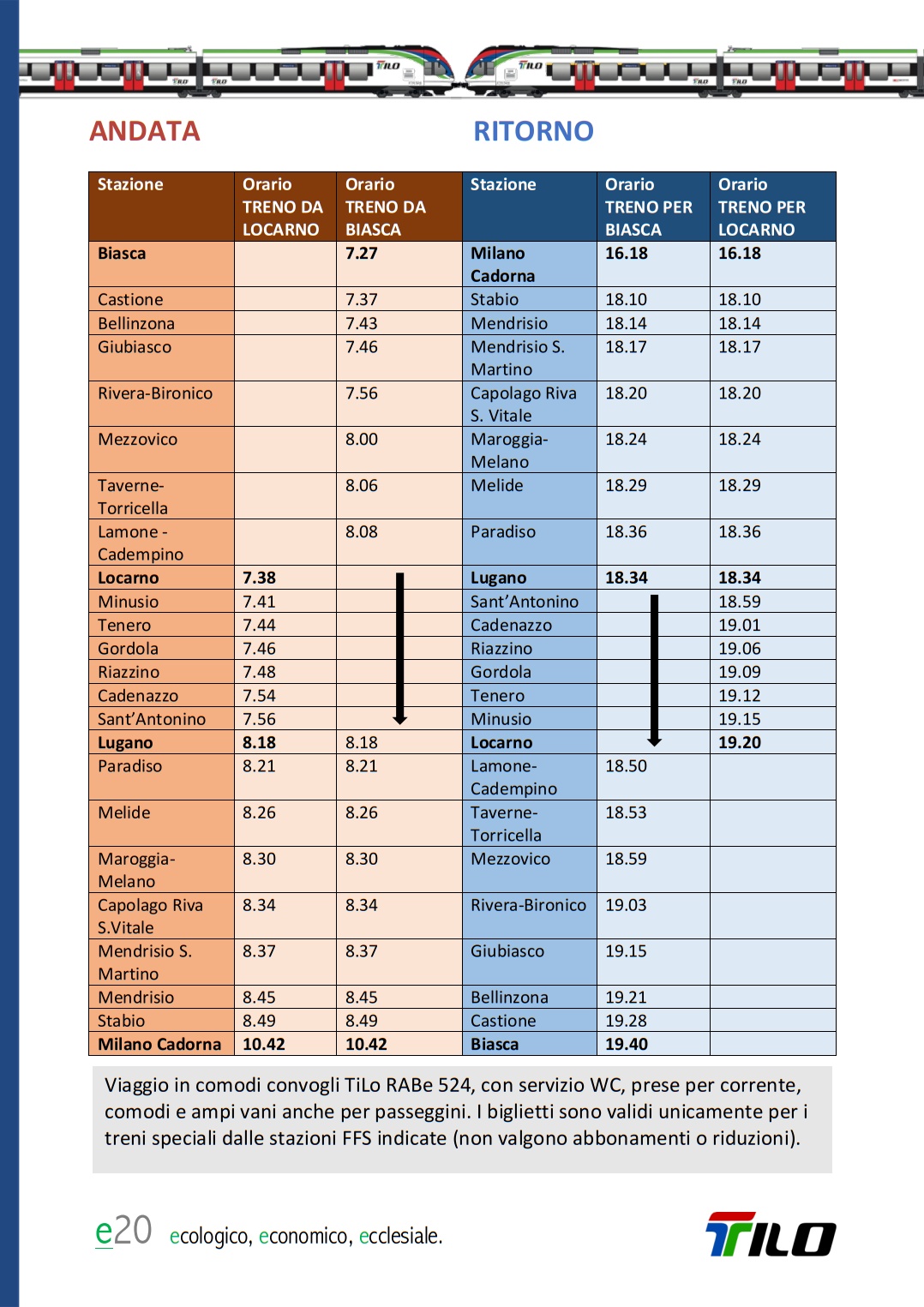 Il pellegrinaggio ferroviario si inserisce nel programma e20, una serie di iniziative della Chiesa luganese che, sotto il motto "ecologico, economico, ecclesiale" intende promuovere il trasporto ferroviario per i pellegrinaggi.