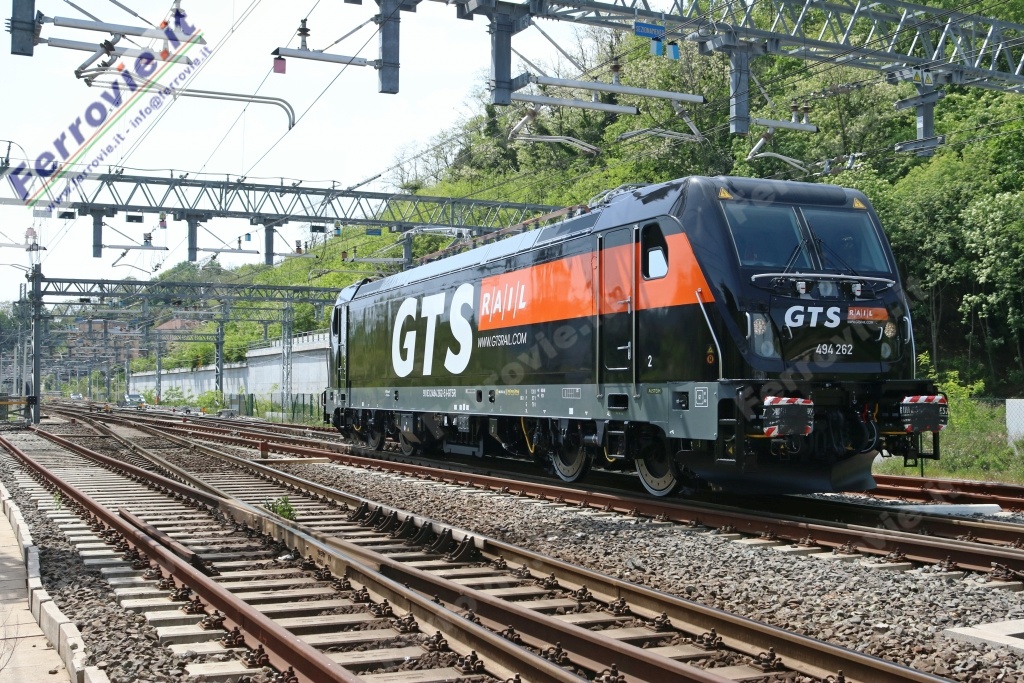 La E 494.262 è subito partita isolata alla volta di Piacenza, per poi raggiungere Bari dove ha sede la GTS Rail per la successiva immissione in servizio.