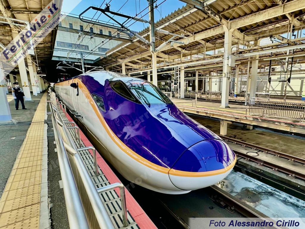 TOKYO (Giappone) - Con il cambio orario del 16 marzo 2024 è entrato in servizio lo Shinkansen E8, di East JR, l'ultimo gioiello sui binari dell'alta velocità giapponese, in servizio tra Tokyo e Shinjo sulla linea Yamagata Shinkansen chiamata anche Mini Shinkansen perché sulla medesima linea convivono sia i treni a scartamento ordinario da 1435 mm, come l'E8, che quelli a scartamento ridotto da 1067 mm; pertanto il materiale rotabile è costruito con una sagoma ridotta rispetto a quella adottata per le linee Shinkansen "nuove", per affrontare le curve, le gallerie e le stazioni normalmente utilizzati da tutti i treni in circolazione sulla linea, dove si viaggia a una velocità di 130 km/h con un voltaggio di 20 kV invece che il consueto 25 kV delle linee Shinkansen.