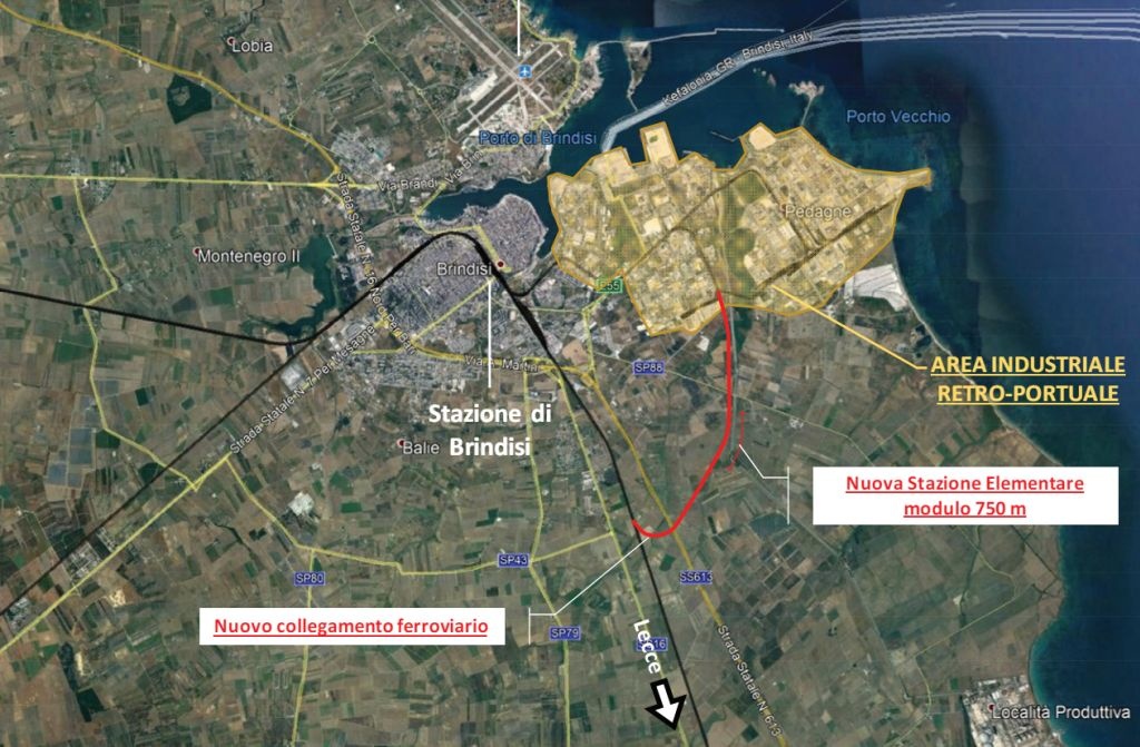 Il progetto prevede il completamento e l'attrezzaggio tecnologico della nuova stazione "Brindisi Intermodale" - che avrà quattro binari centralizzati a modulo 750 metri per arrivo e partenza treni merci - e il collegamento ferroviario della nuova stazione con la Direttrice Adriatica, tramite una nuova linea elettrificata a binario unico, con allaccio del nuovo bivio (PC) "Brindisi Sud".
