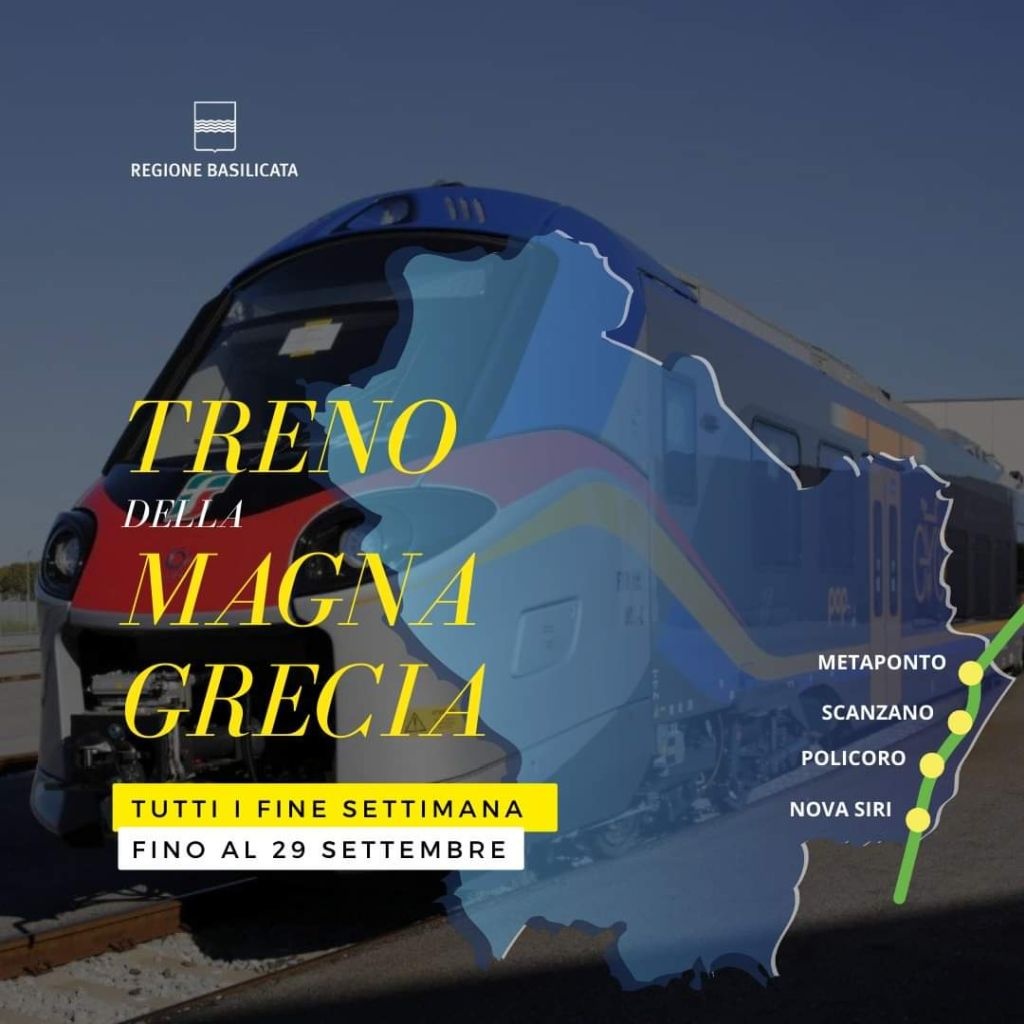 È partito nella mattinata di domenica 9 giugno il Treno della Magna Grecia, che unisce la Puglia alla Calabria passando per la Basilicata. Il treno ha fatto tappa in quattro stazioni intermedie così come previsto dall'accordo tra il Dipartimento Infrastrutture della Regione Basilicata e Trenitalia. Il servizio è attivo nei fine settimana estivi fino al prossimo 29 settembre.