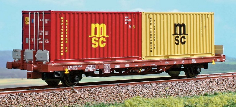 | Descrizione: | Carro pianale FS Tipo Kgps con carico di due container MSC |