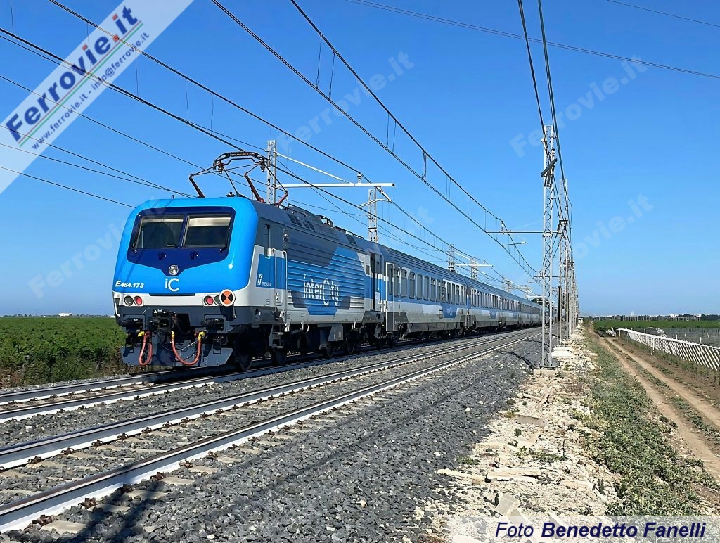 Le due locomotive monocabina (E.464.173 e 344), prime macchine del gruppo ad essere state ripellicolate nei nuovi colori Intercity, hanno effettuato il loro primo servizio regolare nella giornata di lunedì 17 giugno. Esse sono state infatti titolari, in doppia trazione simmetrica, dell'IC 605 da Milano Centrale a Lecce (via Taranto - Brindisi). Il treno, che era costituito da una composizione omogenea con tutte le carrozze in nuova livrea, ha percorso tutto lo stivale costeggiando l'Adriatico sino al Salento. Il giorno successivo è previsto il ritorno della composizione al Nord con uno dei tanti Intercity in partenza da Lecce.