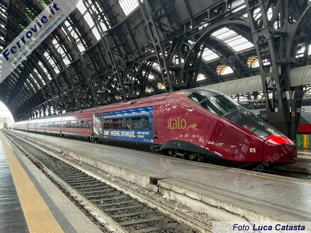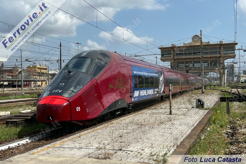 MILANO - L'alta velocità marittima di SNAV incontra quella ferroviaria di Italo. Da questa mattina è nuovamente in servizio l'AGV 575-05, che presenta le due casse di estremità del convoglio con la pellicolatura pubblicitaria SNAV. La grafica è completata dall'immagine del monocarena SNAV Orion in navigazione e il messaggio "Insieme ovunque", con l'elenco delle destinazioni servite dal vettore marittimo.