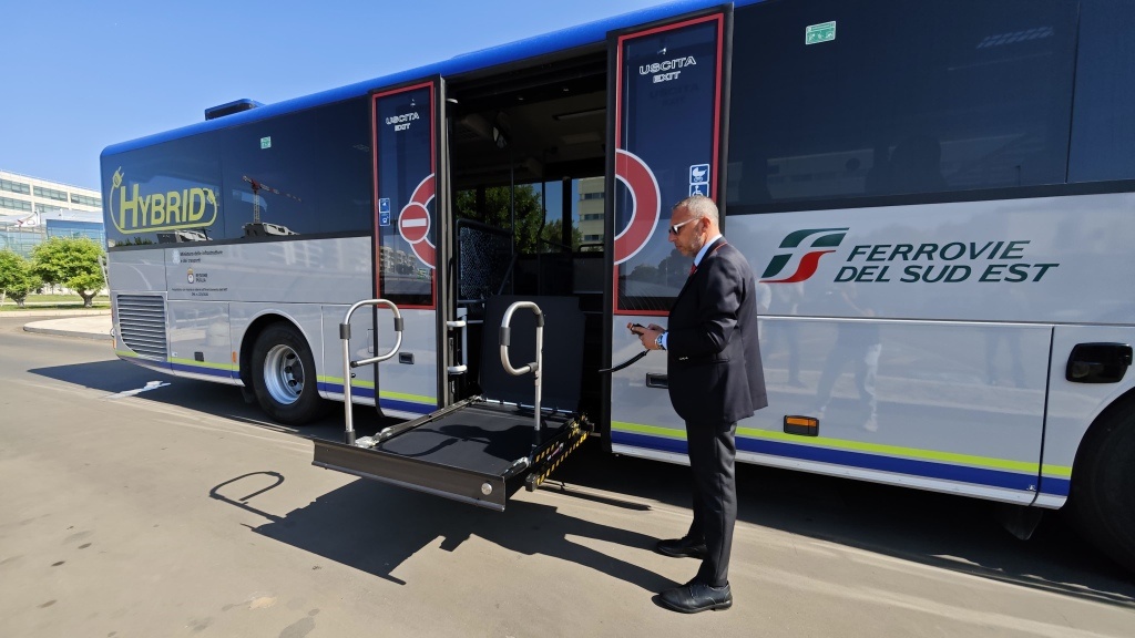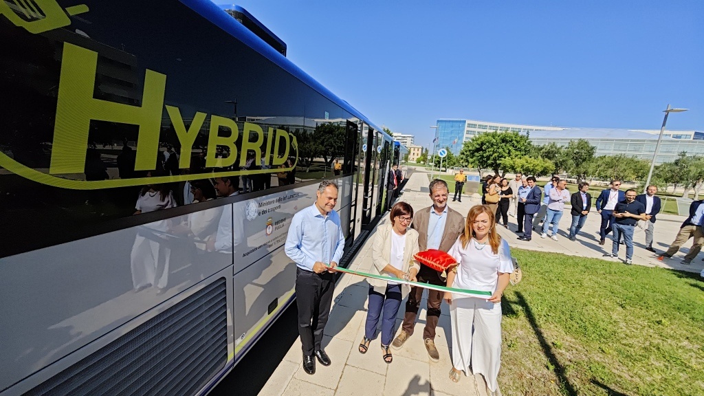 Sette nuovi autobus ibridi circoleranno nei prossimi giorni sulle strade pugliesi contribuendo a rendere più sostenibile il trasporto pubblico regionale. I nuovi mezzi, acquistati con un cofinanziamento della Regione Puglia, sono stati presentati oggi (24 luglio) nella sede della Regione Puglia, alla presenza dell'Assessore ai Trasporti e alla Mobilità Sostenibile, Debora Ciliento, e di Giorgio Botti, Amministratore Delegato di Ferrovie del Sud Est.