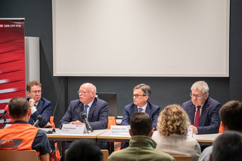 Da oggi, 2 settembre 2024, la galleria di base del San Gottardo è di nuovo completamente aperta al traffico ferroviario. I viaggiatori tornano a guadagnare un'ora sugli spostamenti fra il Ticino e la Svizzera tedesca. La novità sono i collegamenti ogni mezz'ora. Anche il traffico merci recupera maggiori capacità. In occasione della conferenza stampa per la riapertura del tunnel ferroviario più lungo del mondo, il consigliere federale Albert Rösti, il Presidente del Consiglio di Stato ticinese, Christian Vitta, il consigliere di Stato urano Urban Camenzind e il CEO delle FFS, Vincent Ducrot, ne hanno sottolineato l'importanza come collegamento chiave nord-sud per l'Europa e la Svizzera.