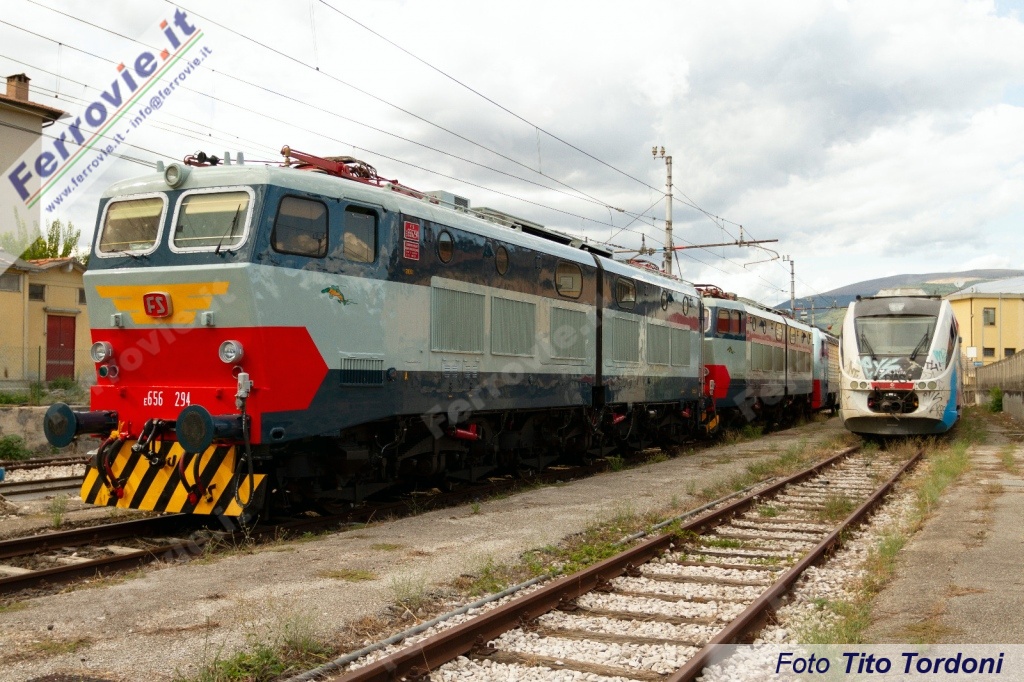 FOLIGNO (Perugia) - Come preannunciato nei giorni scorsi (vedi Treni storici del 05/09/2024 e Treni storici del 04/09/2024), è tornata a Foligno in queste ore la E.656.294 di Fondazione FS per un ritocco estetico. Nei prossimi giorni si interverrà nelle locali officine di Trenitalia per riverniciare la fascia frontale rossa nelle misure opportune e verrà modificata la marcatura frontale.