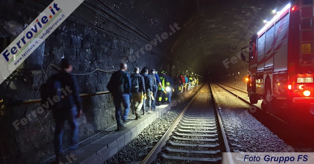 Prolungandosi la sosta del treno viaggiatori in galleria per la particolare situazione di emergenza in atto, che non rende possibile un trasbordo su altro convoglio in tempi brevi, all'insorgere di episodi di panico da parte dei viaggiatori, il capotreno del treno regionale richiede che si proceda all'esodo dei viaggiatori fuori dalla galleria, utilizzando gli appositi camminamenti e con l'assistenza dei Vigili del Fuoco, per il successivo trasbordo su autobus sostitutivi.