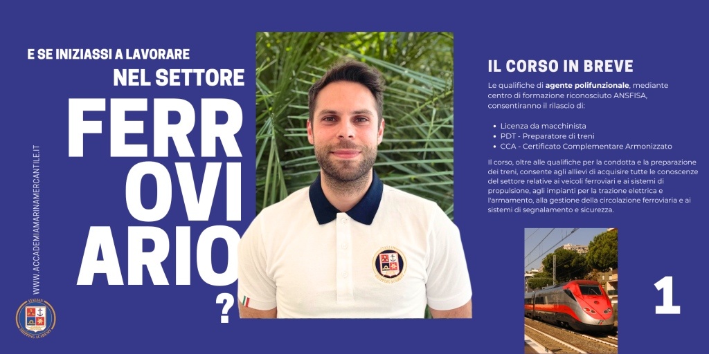 FAIMM - Fondazione Accademia Italiana della Marina Mercantile - segnala l'avvio del corso ITS gratuito "TRASPORTO FERROVIARIO E INTERMODALE CON QUALIFICA DI AGENTE POLIFUNZIONALE". La scadenza del bando è prevista per il giorno 4 ottobre 2024.
