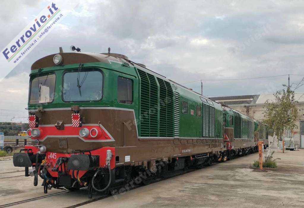 RIMINI - Ancora due locomotive Diesel D.445 entrano a far parte del parco storico di Fondazione FS. Si tratta delle D.445.1063 e 1104, fino a pochi mesi fa impiegate regolarmente per la trazione dei treni Intercity jonici Taranto - Reggio Calabria in livrea omogenea con le carrozze UIC-Z1.