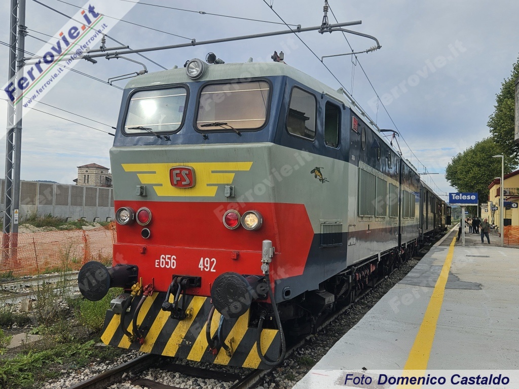 Il convoglio ha viaggiato in trazione elettrica da Napoli a Benevento con la E.656.492 e da qui a Pietrelcina con la D.345.1142; in composizione un bagagliaio a due assi, una Centoporte e una Corbellini.