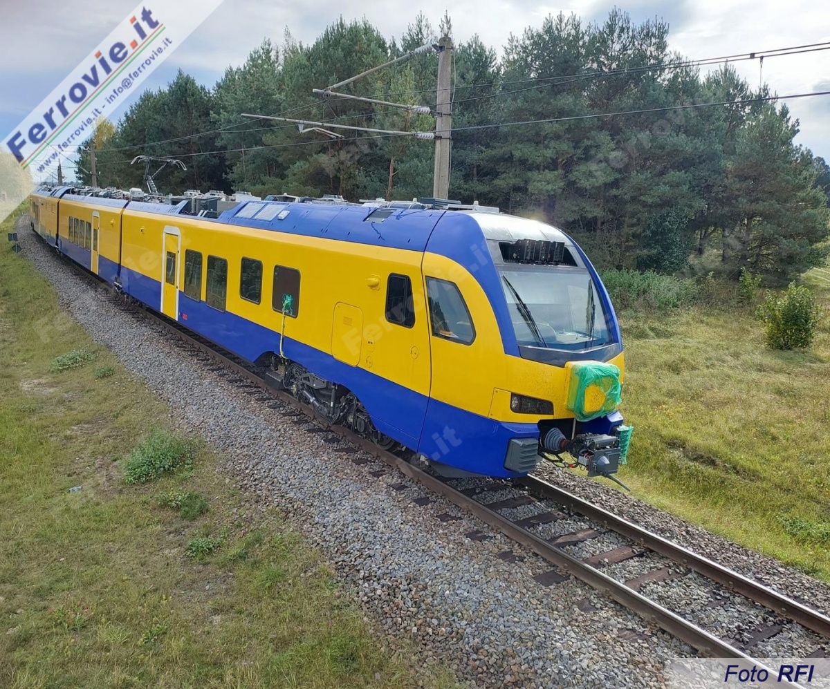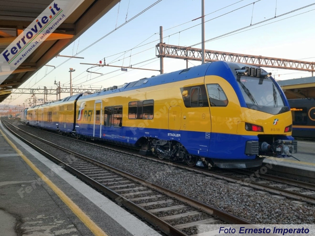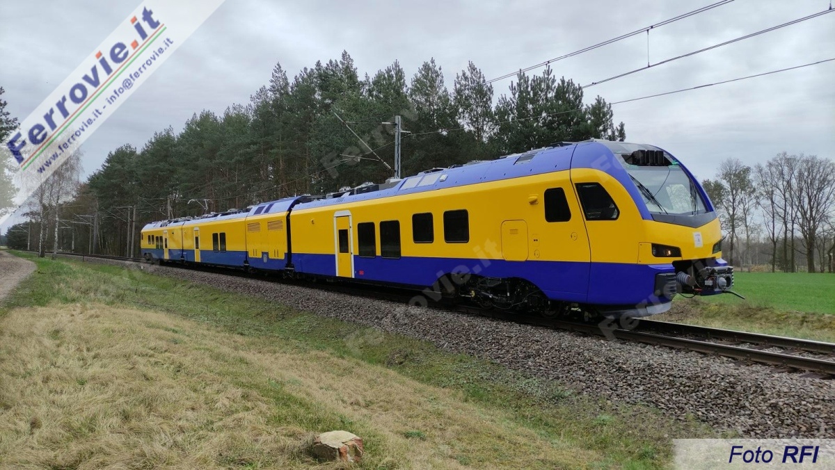 TARVISIO (Udine) - È arrivato in Italia domenica 10 novembre il primo di cinque nuovi convogli diagnostici per RFI - Rete Ferroviaria Italiana (vedi Brevi ferroviarie del 22/06/2021). Prodotti dalla Mermec in collaborazione con Stadler, si tratta di treni a composizione bloccata a tre casse, con trazione bimodale (Diesel ed elettrica) che saranno operativi in tutta Italia per ispezionare l'infrastruttura ferroviaria.