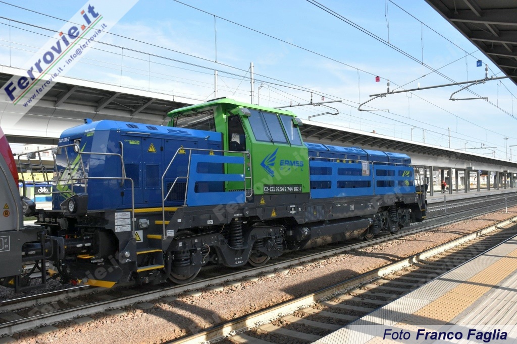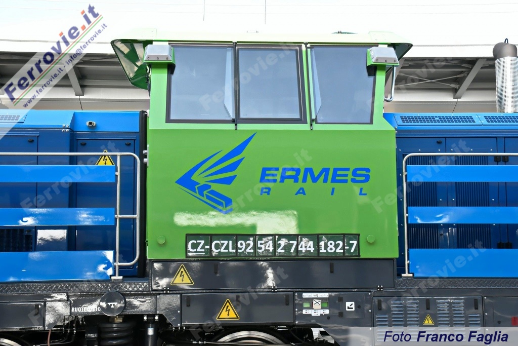 BRESCIA - È arrivata a Brescia nel pomeriggio di martedì 12 novembre la locomotiva 744.182 per l'operatore Ermes Rail. L'impresa ferroviaria di Spinadesco, in origine denominata MIS Rail e fondata da Magli Group e Arvedi Steel, impiegherà questa locomotiva in testa ai treni merci da Brescia per Montirone, probabilmente al posto della DE 318.010 di Captrain.