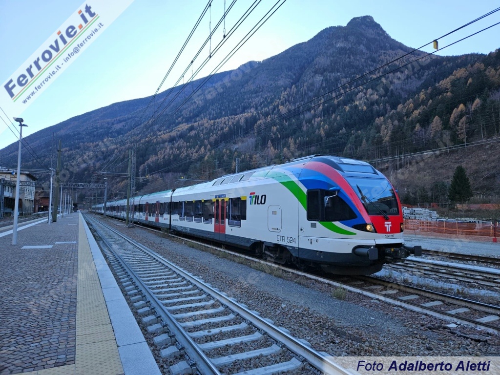 Come ogni anno l'associazione Verbano Express ha organizzato per sabato 30 novembre un treno charter da Luino per il Trentino-Alto Adige effettuato con la doppia di ETR.524-113 e 117 di Tilo. Partito di primo mattino da Luino, il convoglio ha fermato per salita viaggiatori a Porto Valtravaglia, Laveno-Mombello, Besozzo, Gallarate, Busto Arsizio FS e Milano Lambrate proseguendo senza fermate intermedie fino a Trento, Bolzano e Bressanone. Da qui il materiale ha raggiunto fuori servizio Fortezza dove ha sostato in attesa del viaggio di ritorno verso Luino, effettuando le stesse fermate dell'andata.