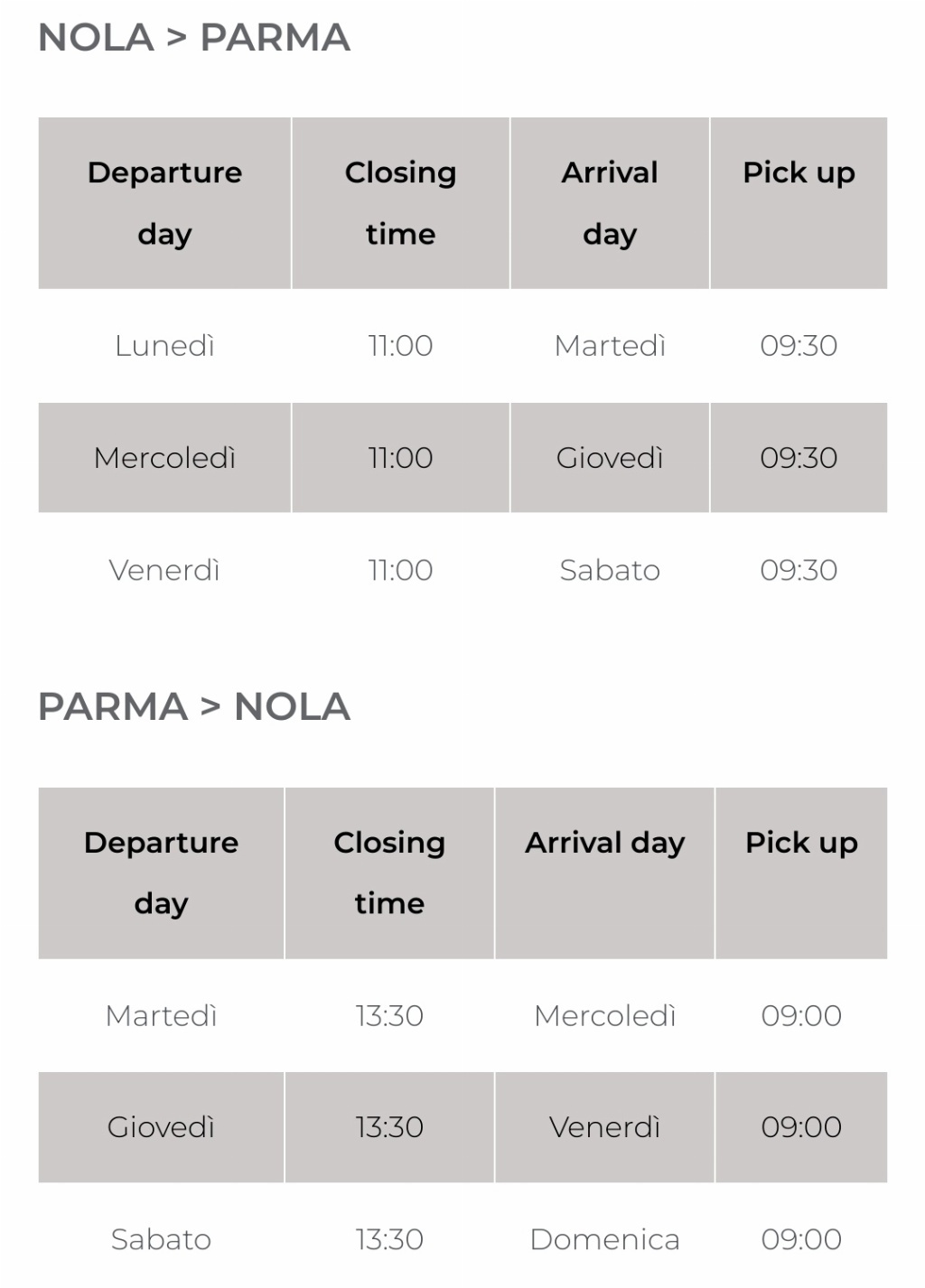 Questa espansione strategica, che sarà operativa a partire dal 15 gennaio 2025, per la tratta Nola-Parma e, dal 16 gennaio 2025, per la tratta Parma-Nola, rappresenta un importante passo avanti nella missione dell'azienda di fornire soluzioni di trasporto sempre più efficienti, innovative e sostenibili. La nuova tratta, che collegherà il cuore dell'Emilia-Romagna con la provincia di Napoli, è stata progettata per rispondere alle crescenti esigenze del mercato, offrendo un servizio affidabile e regolare.