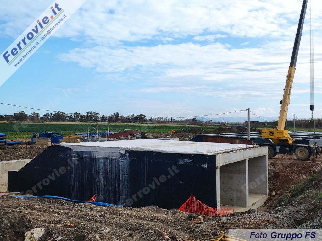 Tra le attività in corso anche la spinta oleodinamica di due tombini idraulici sotto la linea ferroviaria Adriatica.