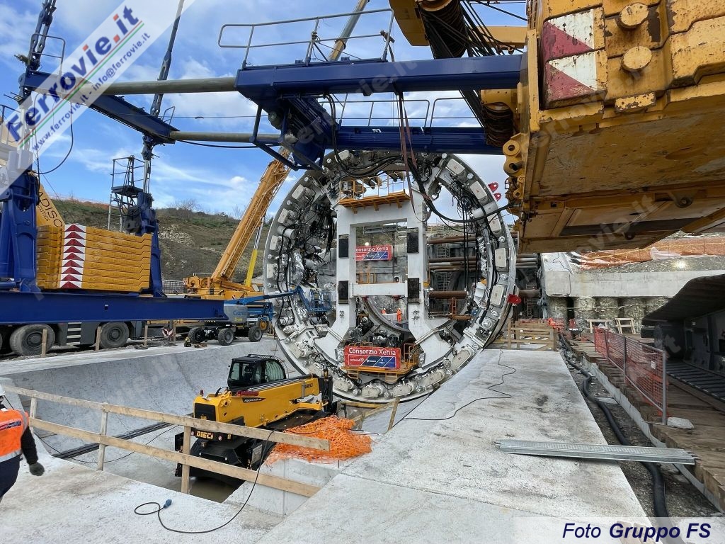 Continuano le fasi di assemblaggio della TBM che scaverà la galleria Saginara (SA), la più lunga sul tracciato della nuova linea AV/AC Salerno - Reggio Calabria.