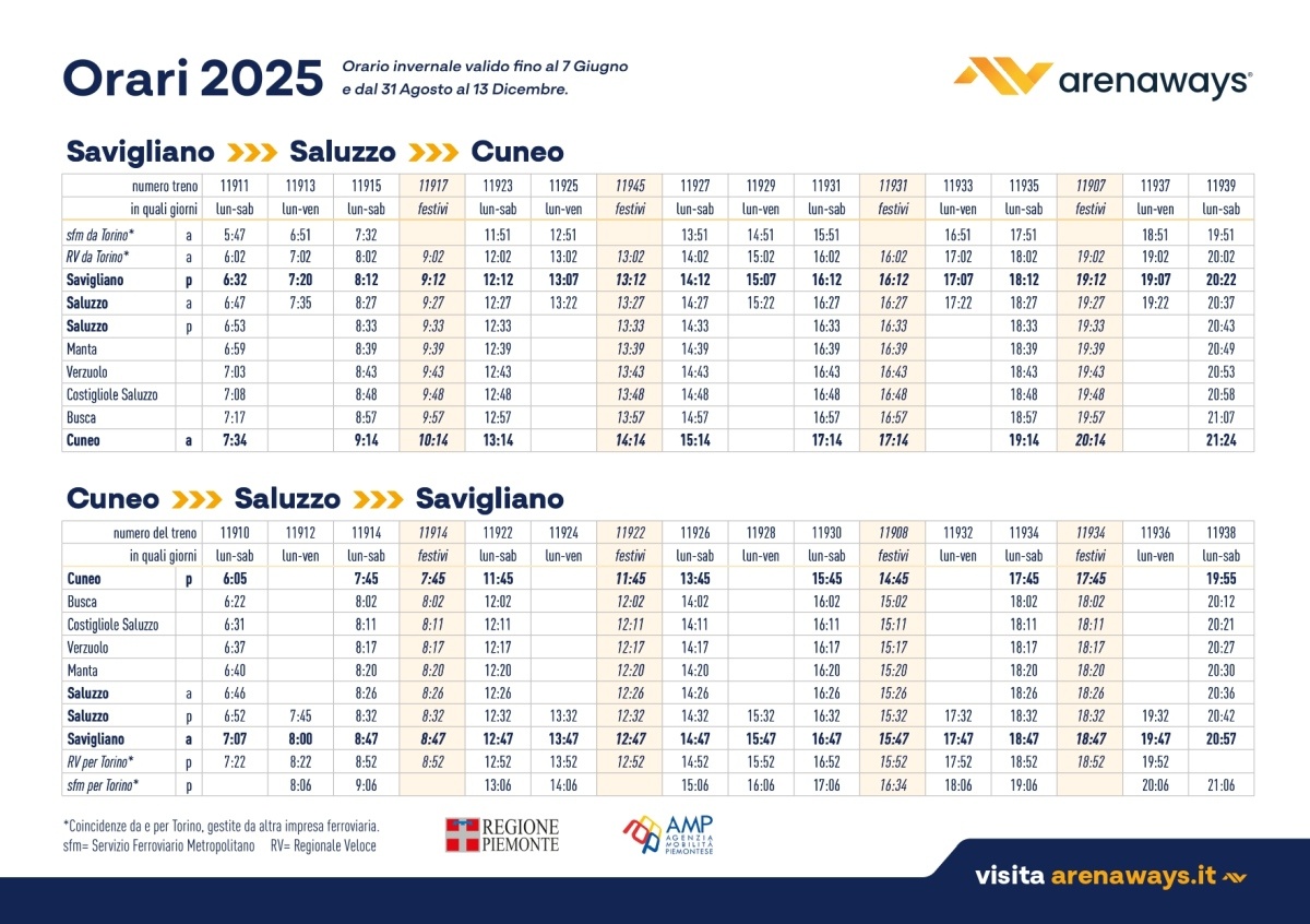 Sono stati diffusi gli orari dei nuovi collegamenti ferroviari operati da Arenaways. Il servizio partità il prossimo 27 gennaio e inizialmente sarà servita la relazione Cuneo-Savigliano (vedi News ferroviarie del 20/01/2025).