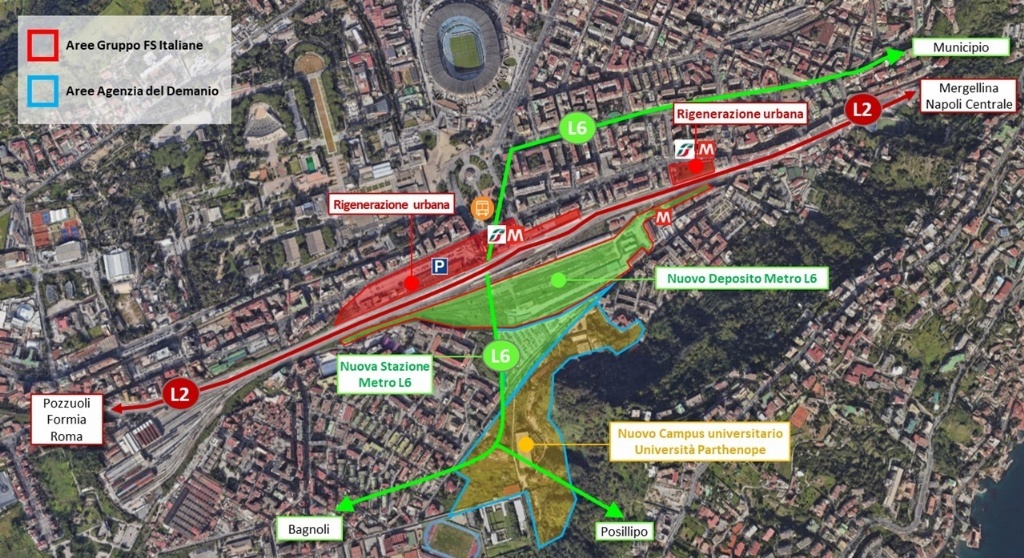 L'accordo firmato tra Regione Campania, Comune di Napoli, Agenzia del Demanio, Università degli Studi di Napoli Parthenope, Rete Ferroviaria Italiana e FS Sistemi Urbani prevede la realizzazione della nuova stazione e del nuovo deposito della Linea 6 della metropolitana comunale, la rigenerazione delle aree ferroviarie e la realizzazione del nuovo campus dell'Università Parthenope.