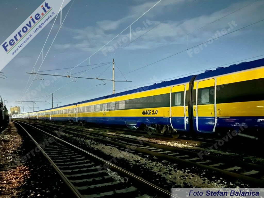 La composizione dell'invio era decisamente variegata: come unità di trazione la locomotiva elettrica E.652.171 in livrea XMPR (noleggiata a RFI da Mercitalia Rail), a seguire due carrozze in livrea InterCity Notte (una UIC-Z e una Gran Confort), le otto vetture di "Aiace 2.0" intercalate tra due carrozze scudo UIC-X in livrea rosso fegato (apposite per i trasferimenti di unità di ETR.500) e a chiudere una carrozza UIC-Z in livrea InterCity Giorno.