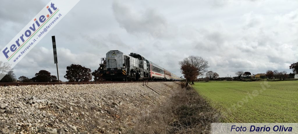 Il convoglio è partito da Vicenza intorno alle 9:30 di giovedì 30 gennaio verso Padova, giungendo a Bologna Centrale alle 11:30. Lasciato il capoluogo emiliano, ha poi puntato verso Sud percorrendo la linea Adriatica fino a Foggia, dove è arrivato alle 21.40 circa (il lungo viaggio non è stato esente da intoppi). Per tutta la giornata di venerdì 31 gennaio è rimasto nel capoluogo dauno e in coda è stata agganciata la locomotiva Diesel D.318.2422 di Mercitalia Shunting & Terminal, necessaria per il trasferimento delle vetture nel tratto non elettrificato da Gioia del Colle a Jesce.