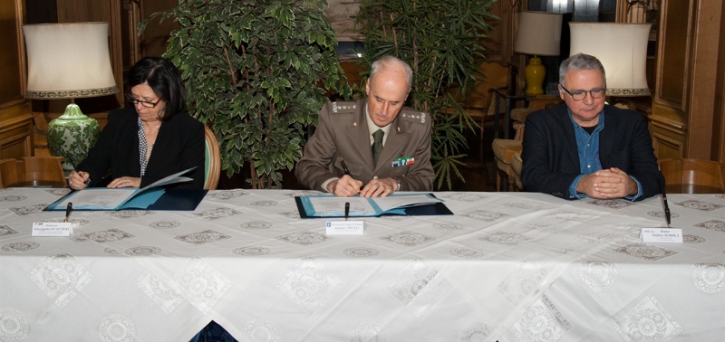 Il Comandante Logistico dell'Esercito, Generale di Corpo d'Armato Adriano Vieceli, il Direttore Generale di Ferrovie Emilia Romagna, Dr. Stefano Masola, e il Presidente e Amministratore Delegato di Trasporto Passeggeri Emilia Romagna, Dott.ssa Giuseppina Gualtieri, hanno sottoscritto, presso la Sala Convegno Ufficiali "Pio IX" di Roma, una nuova Convenzione per la formazione e l'addestramento operativo del personale militare attraverso l'impiego sui veicoli che operano su strutture e reti ferroviarie italiane.