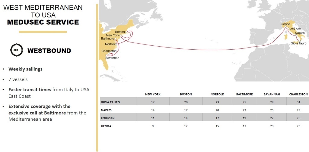 Il servizio MEDUSEC tra Genova e New York raggiungerà un transit time record di soli 9 giorni, grazie ai seguenti aggiornamenti: