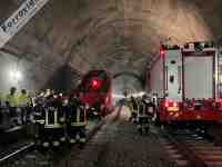 Nel frattempo in galleria vengono accesi gli impianti di emergenza (illuminazione, controllo fumi, antincendio) e il personale di bordo assiste nella discesa dal treno i passeggeri, uno dei quali si infortuna ad una gamba non riuscendo a proseguire verso la via di fuga.