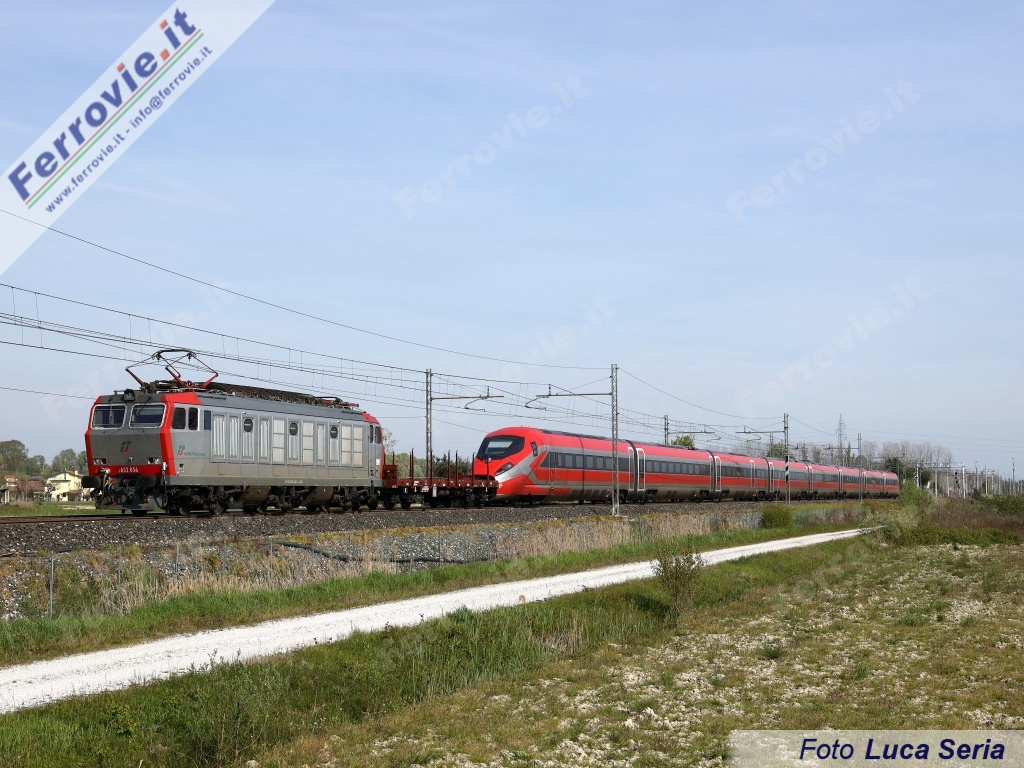 TARVISIO (Udine) - Dopo un ciclo di test che si è tenuto sul circuito di Velim ed iniziato a metà giugno 2024, è rientrato in Italia l'ETR.1000-59 (vedi News ferroviarie del 11/06/2024). Il convoglio è arrivato nel nostro Paese attraverso il valico di Tarvisio giovedì 10 aprile; qui una E.652.056 di Mercitalia Rail è subentrata ad una locomotiva austriaca per la parte finale del viaggio fino a a Pistoia.