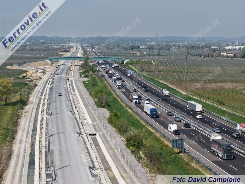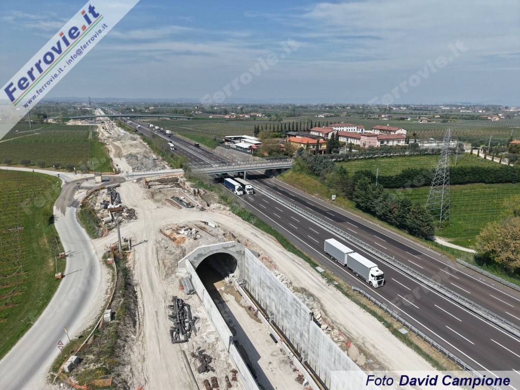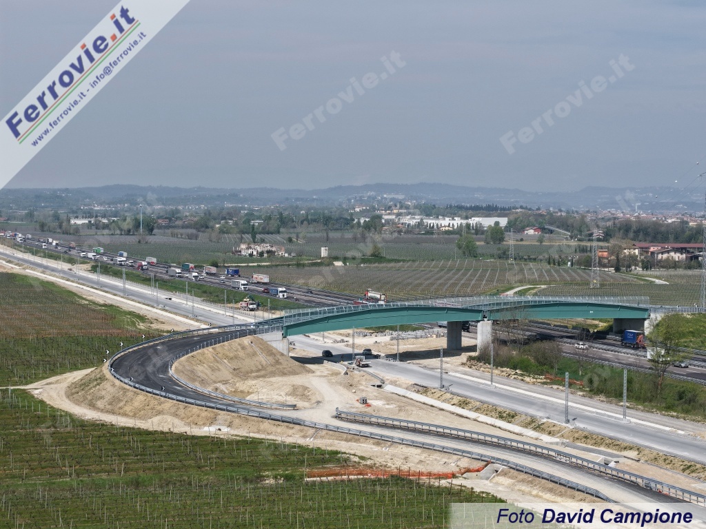 Il tracciato, dopo aver incontrato la galleria che sottopassa l'autostrada A4 nel comune di Sona (VR), risale a piano campagna ponendosi a nord dell'autostrada.