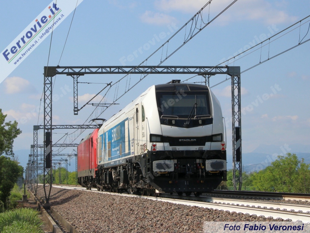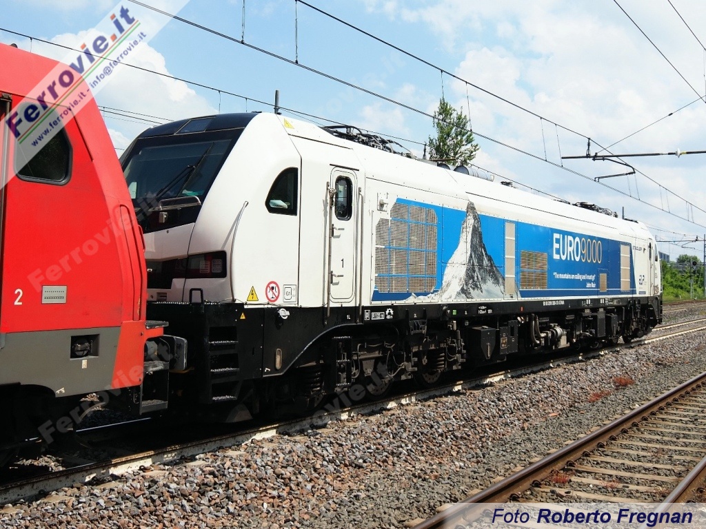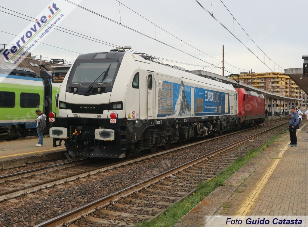 BOLOGNA - Prosegue l'iter di omologazione della locomotiva Stadler EURO9000 in Italia. Sabato 10 maggio, l'unità 2019 300-3 è stata trasferita da Bologna San Donato a Domodossola, via Verona e Brescia, a causa della chiusura per lavori della linea Bologna-Milano per lavori. Il convoglio era trainato dalla locomotiva E 483.102 di DB Cargo Italia.