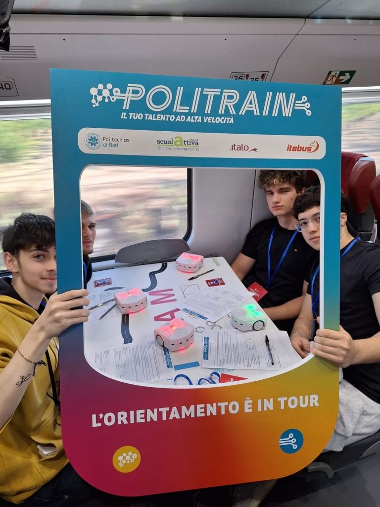 La novità quest'anno è costituita da Politrain, grazie alla partecipazione al progetto di Italo, treno ad alta velocità. Un laboratorio immersivo ha trasformato il treno in un'aula viaggiante dove tecnologia, scienza e creatività si sono dati il benvenuto. Durante il viaggio studenti e studentesse sono diventati protagonisti di esperienze STEAM coinvolgenti: dalla programmazione con strumenti di coding visuale alla scoperta della realtà aumentata attraverso visori interattivi, fino alla costruzione di piccoli dispositivi tecnologici e sfide di problem solving collaborativo. Ed ecco i laboratori esperienziali completi, proposti sul treno, sul bus: