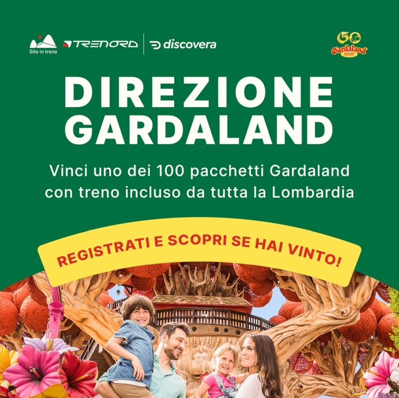 Una o più giornate a Gardaland sono anche i premi in palio per chi partecipa a "Direzione Gardaland", concorso "instant win" ideato da Trenord e Discovera per incoraggiare sempre più viaggiatori a muoversi in treno anche nel tempo libero.