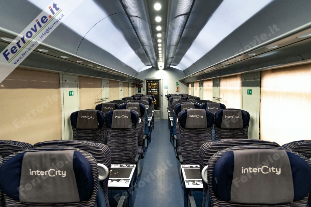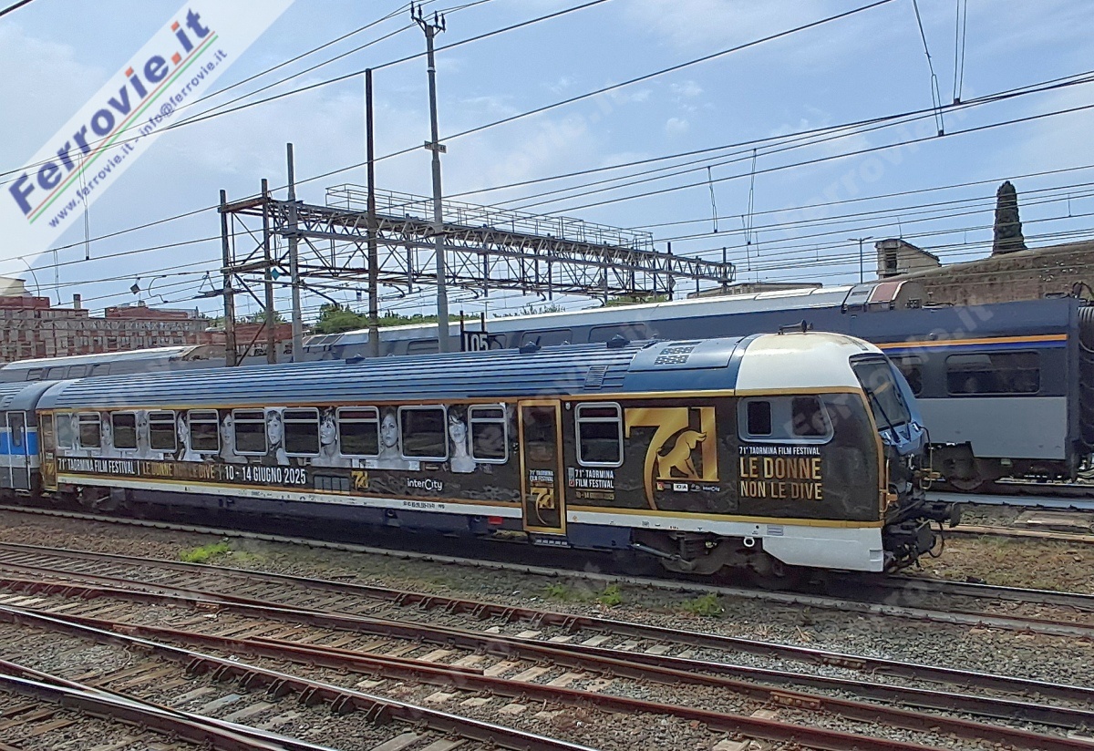 TAORMINA (Messina) - Livrea speciale per una carrozza pilota tipo Z1A di Trenitalia. In occasione del Taormina Film Festival 2025 i volti delle grandi donne del cinema trovano spazio sulla pilota 50 83 80-98 105-2 della Divisione Business Intercity di Trenitalia, che dal 5 giugno è in composizione alla coppia di Intercity Roma - Palermo/Siracusa.