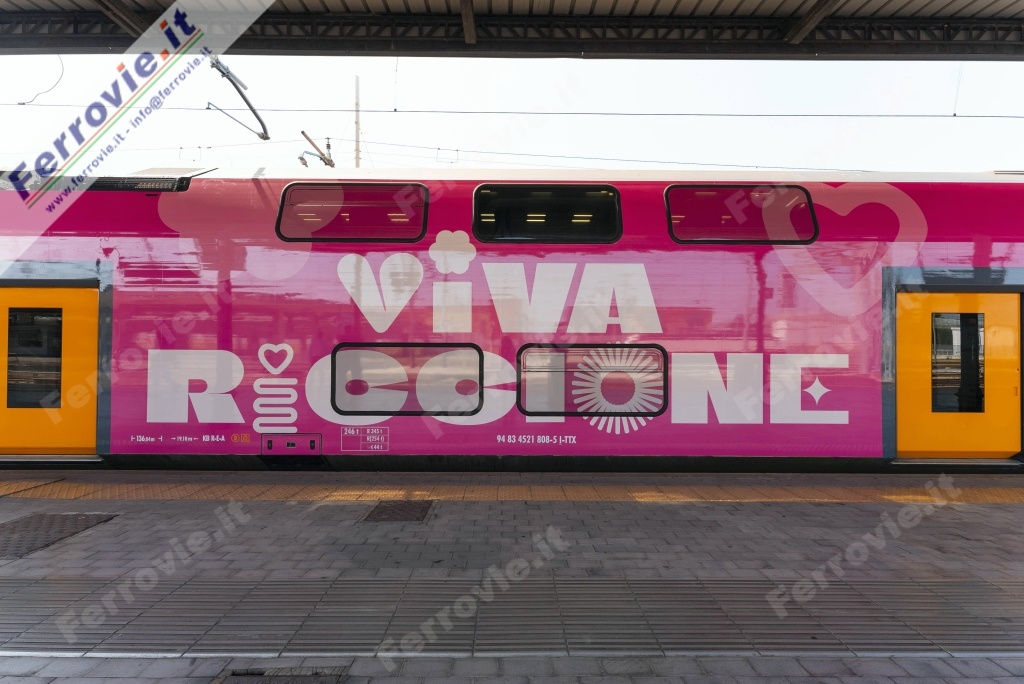 Un treno brandizzato che porta Riccione in viaggio