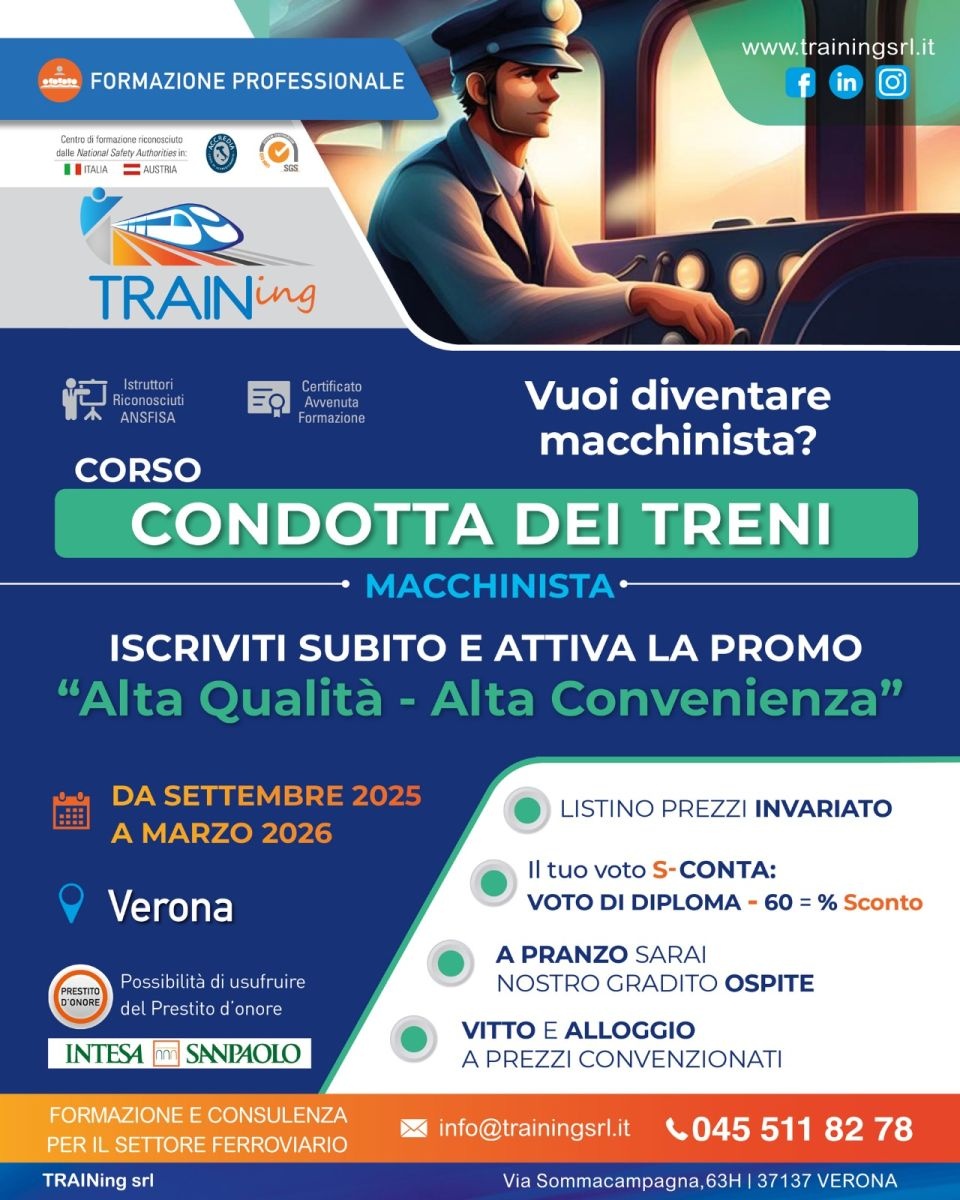 Per approfondimenti ulteriori consultare: https://www.trainingsrl.it/it/formazione-professionale/condotta-dei-treni/