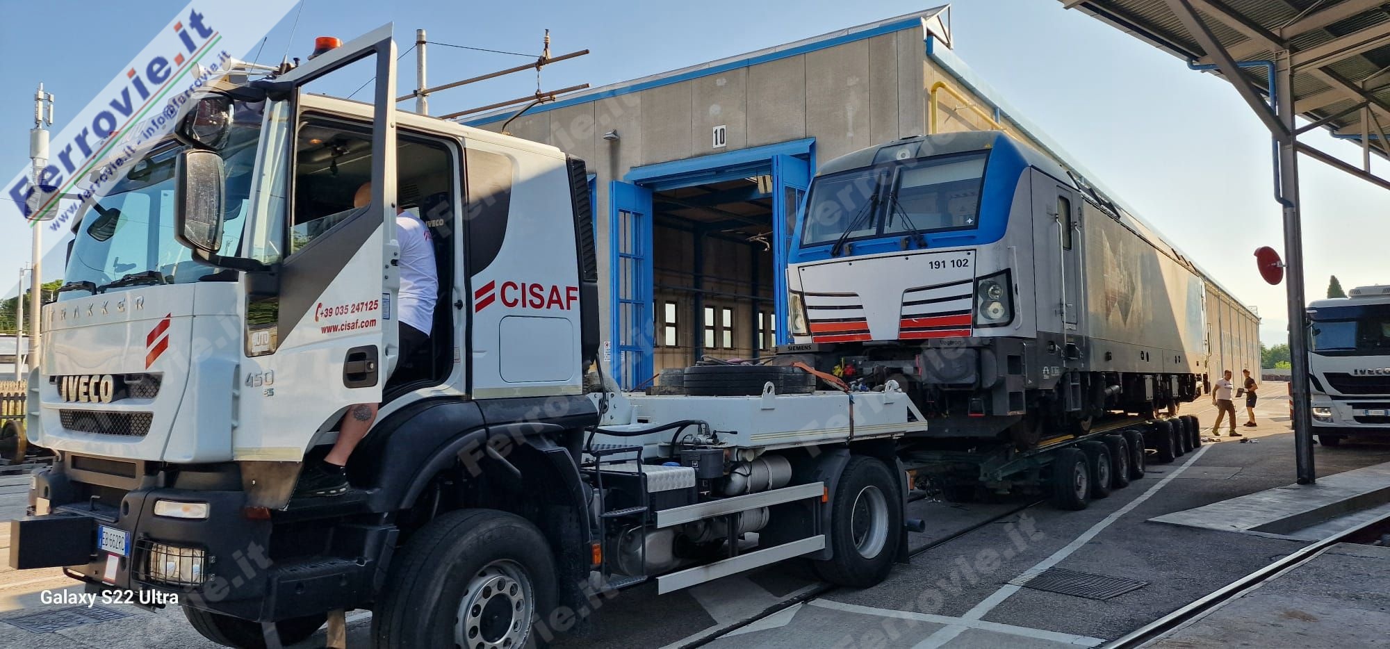 UDINE - Si è concluso il 19 giugno il trasferimento su strada della locomotiva E 191.102 di InRail da Rovigo Interporto a Udine. La macchina era sviata lo scorso 2 marzo nei pressi di Rovigo subendo danni al rodiggio che ne impedivano il trasferimento su ferro. Si è così fatto ricorso alla CISAF Srl, azienda specializzata nei trasporti combinati, che tramite carrello stradale ha trasferito la E 191.102 a Udine presso le officine FVG Rail.