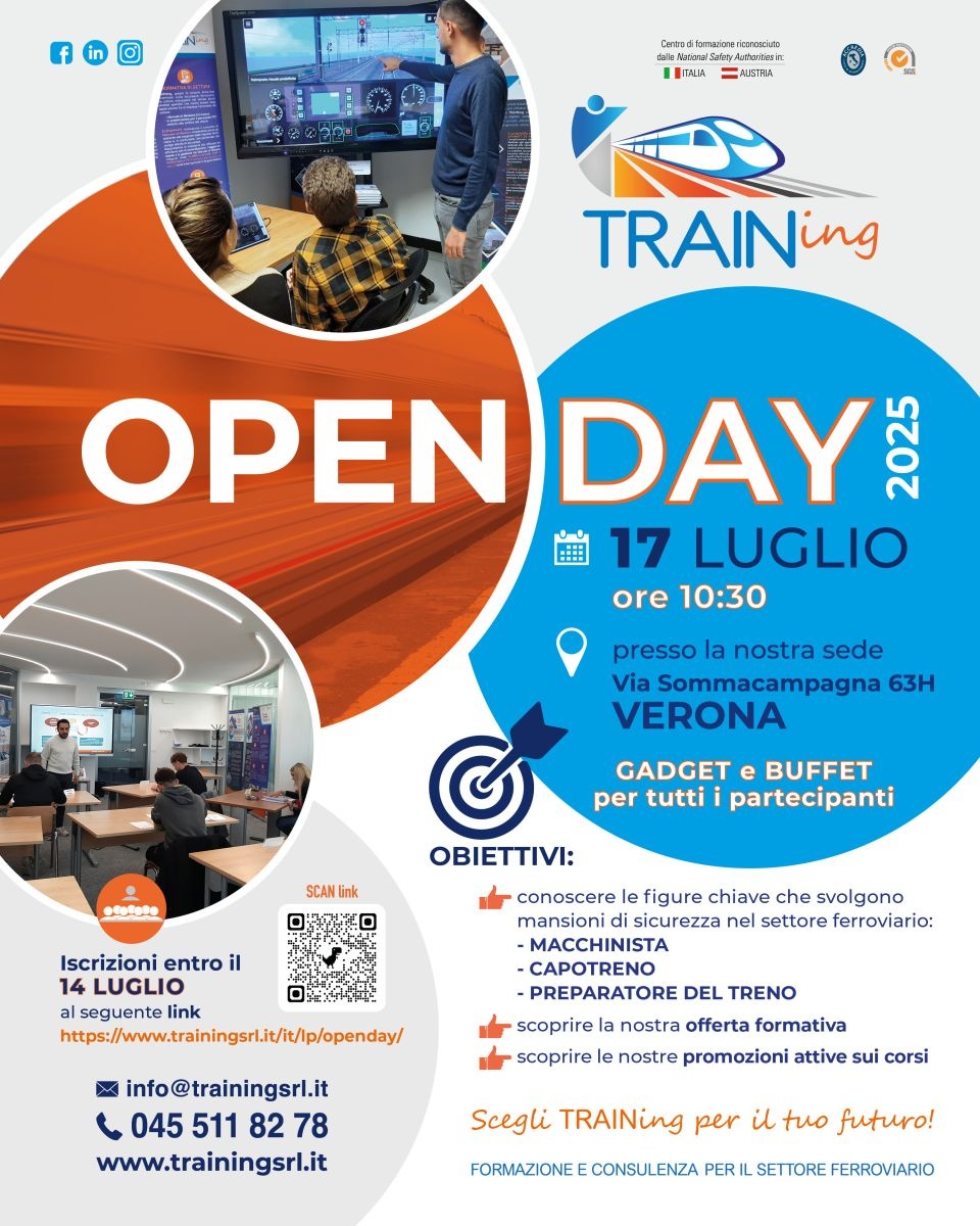 TRAINing S.r.l. organizza un OPEN DAY che si svolgerà il prossimo 17 luglio dalle ore 10:30 in presenza presso la sede di Verona in Via Sommacampagna, 63/H.