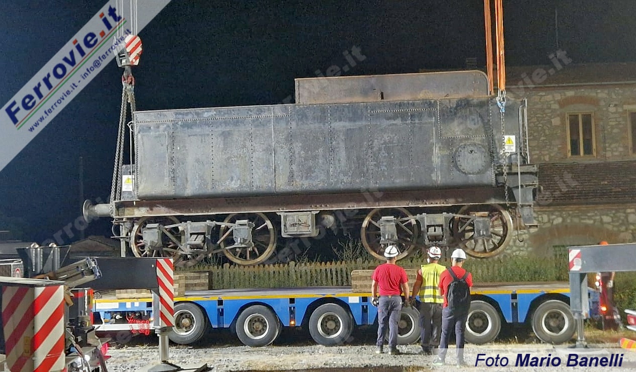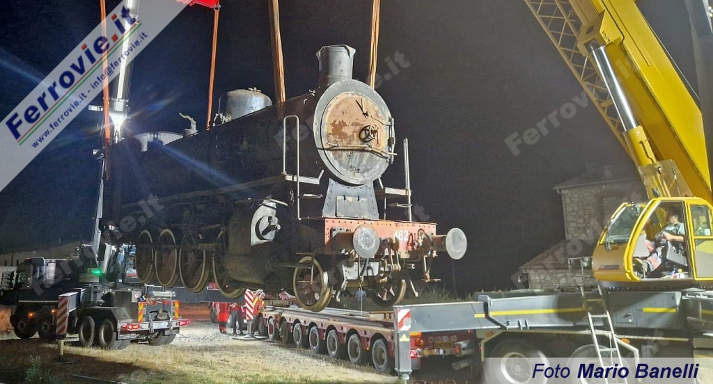 Qui la 740.462 è rimasta fino alla notte tra il 25 e il 26 giugno, quando mediante due gru è stata caricata su due carrelli stradali, uno per la locomotiva l'altro per il tender. Da Asciano il convoglio stradale è partito per l'ultimo viaggio verso la sede definitiva della locomotiva nella stazione di Rapolano Terme.