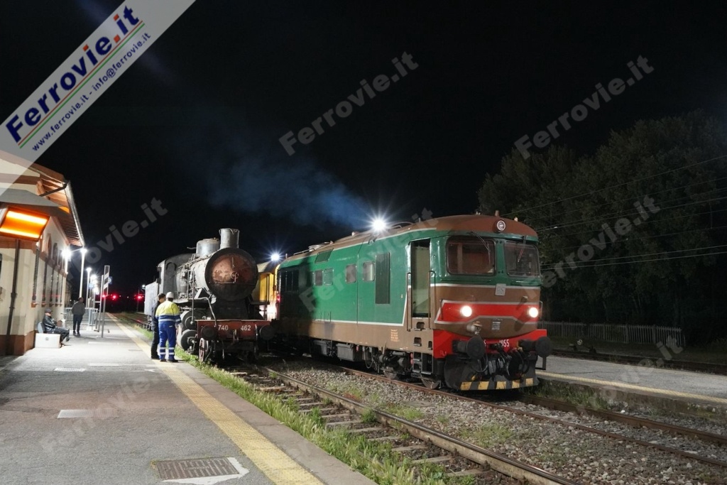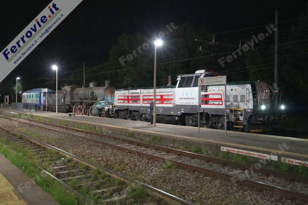 ASCIANO (Siena) - Volgono al termine le operazioni di trasferimento della storica locomotiva a vapore 740.462, che sarà monumentata su un tronchino presso la stazione di Rapolano Terme. Dopo un lungo accantonamento nel Deposito Locomotive LFI di Arezzo Pescaiola cominciato il 24 febbraio 1999, nei primi di maggio 2025 la 740 è stata trasferita da Arezzo a Sinalunga inquadrata tra la 744.032 e una D.341 di TFT; a Sinalunga la vaporiera è stata presa in carico dalla D.445.1055 di Trenitalia che l'ha condotta fino ad Asciano.