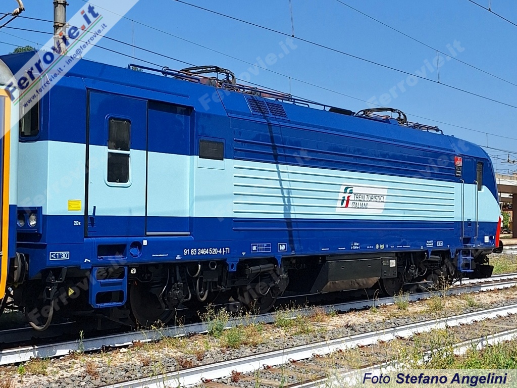FOLIGNO (Perugia) - Sono pronte le prime due E.464 di Treni Turistici Italiani. Nella mattinata del 27 giugno sono uscite dalle Officine Trenitalia di Foligno le E.464.368 e 520 nei colori di TTI, che in giornata saranno inviate a Roma per entrare a far parte del parco rotabili dell'impresa ferroviaria del Grupppo FS.