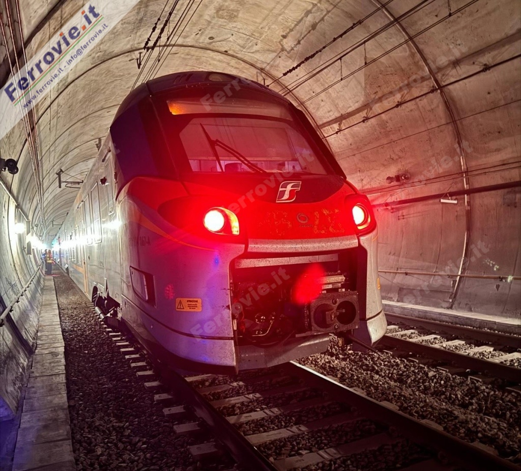 Nel frattempo un treno regionale in transito, a causa dell'improvvisa mancanza di alimentazione, si ferma all'interno della Galleria Doria in direzione Borzoli e, dopo circa 10/15 minuti il personale di bordo avvisa la sala operativa di RFI, avendo anche registrato episodi di intemperanza dei viaggiatori a bordo, e richiede assistenza per l'esodo dei passeggeri, tra i quali un viaggiatore a ridotta mobilità.